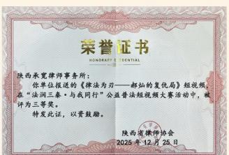 承宽律所普法短视频《律法为刃——郝灿的复仇局》荣获省律协公益普法短视频大赛三等奖