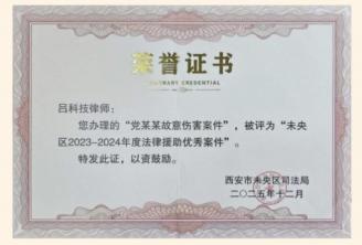 2025年12月25日,西安市未央区司法局召开全区律所主任会议,会上公布未央区2023-2024年度法律援助优秀案件评选结果。承宽律所主任吕科技、